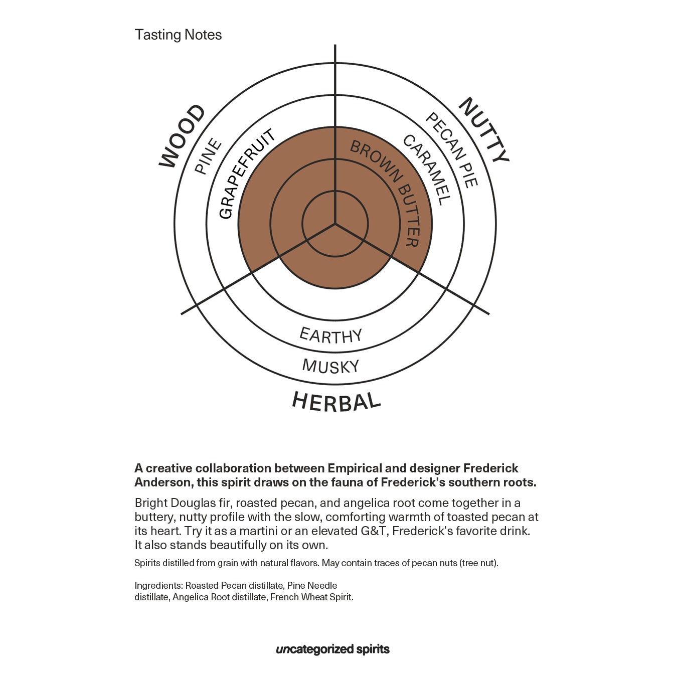 Ingredients: Douglas Fir, Roasted Pecan, Angelica Root, French Wheat Spirit